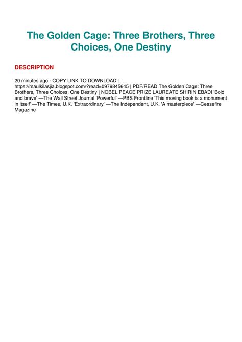Read the golden cage three Reader By Click Button. the golden cage three it’s easy to recommend a new book category such as Novel, journal, comic, magazin, ect. You see it and you just know that the designer is also an author and understands the challenges involved with having a good book. You can easy klick for detailing book and you can read it online, even you can download it